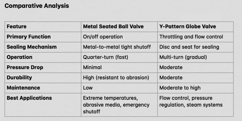 Choosing between a metal seated ball valve and a Y-pattern globe valve depends on the specific requirements of the application. If you need a durable valve for high-temperature and high-pressure conditions with minimal maintenance and quick operation, the metal seated ball valve is the ideal choice. However, if precise flow control and pressure modulation are the primary concerns, a Y-pattern globe valve is more suitable.