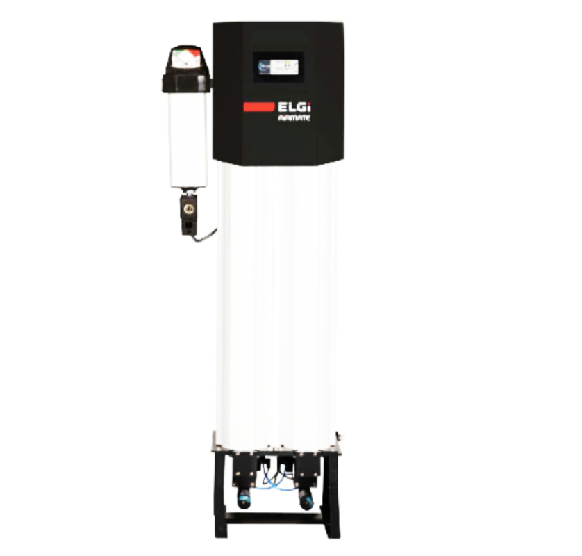 The heatless twin tower desiccant dryer from ELGi removes moisture through absorption onto a granular desiccant bed from the air supply.