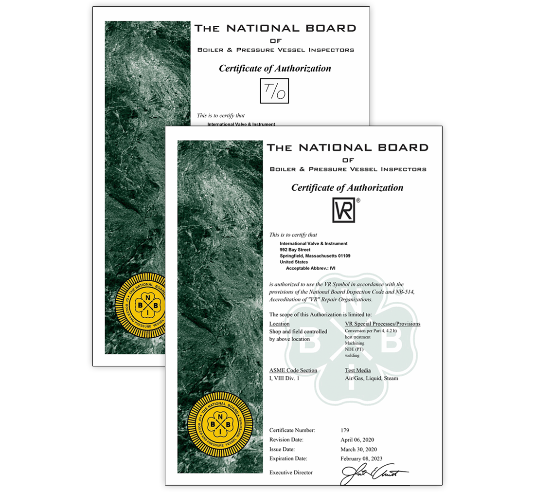 Through our valve repair division, International Valve & Instrument (IVI), The Collins Companies hold a National Board VR Certification (Stamp #179) for pressure relief valve testing and repair—demonstrating our compliance with the highest standards of safety, quality, and technical expertise.